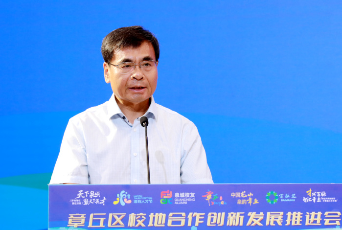 6月23日上午,济南市章丘区校地合作创新发展推进会在山东传媒职业学院产教融合中心举办,校党委书记胡兴禹应邀出席并作校城融合发展经验介绍,党委常委、副校长崔焕勇,党委(校长)办公室、科学技术处、合作发展处负责人参加活动。